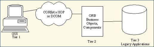Three tier with an Object Request Broker(ORB) architecture provides inter-operability across languages and platforms, enhances maintainability and adaptability of the system. ORBs let objects transparently make requests to and receive responses from other objects located locally or remotely. We can invoke methods on server objects using high level languages such as Java, and C++.ORB separates interface from implementation by specifying an Interface Definition Language(IDL) which provides language neutral data types. Popular CORBA implementations include VisiBroker from Visigenic, Orbix from Iona and Tuxedo from BEA. DCOM provides the best solution for distributed applications running on Microsoft based operating systems.