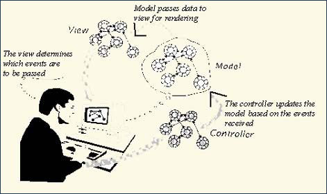 Starting from the user's conceptual model, views are designed for each visible object, followed by the composition of the entire interface. In general the users model has a system model of the objects, task model, and metaphors which help users apply knowledge about the structure of things they already know to the system and task models. The user interface design is based on a model view controller paradigm. The model encompasses the state data, the view refers to how you see it on the screen and the controller dictates how the component interacts with events. The screen design issues include user friendliness, intuitive navigation, data validation and fail over management.Integrated Development Environment(IDE) softwares provide drag and drop graphical interface builders and component interaction with automatic code generation. Popular IDEs include Visual Age, Visual Café for Java and Microsoft Visual C++.